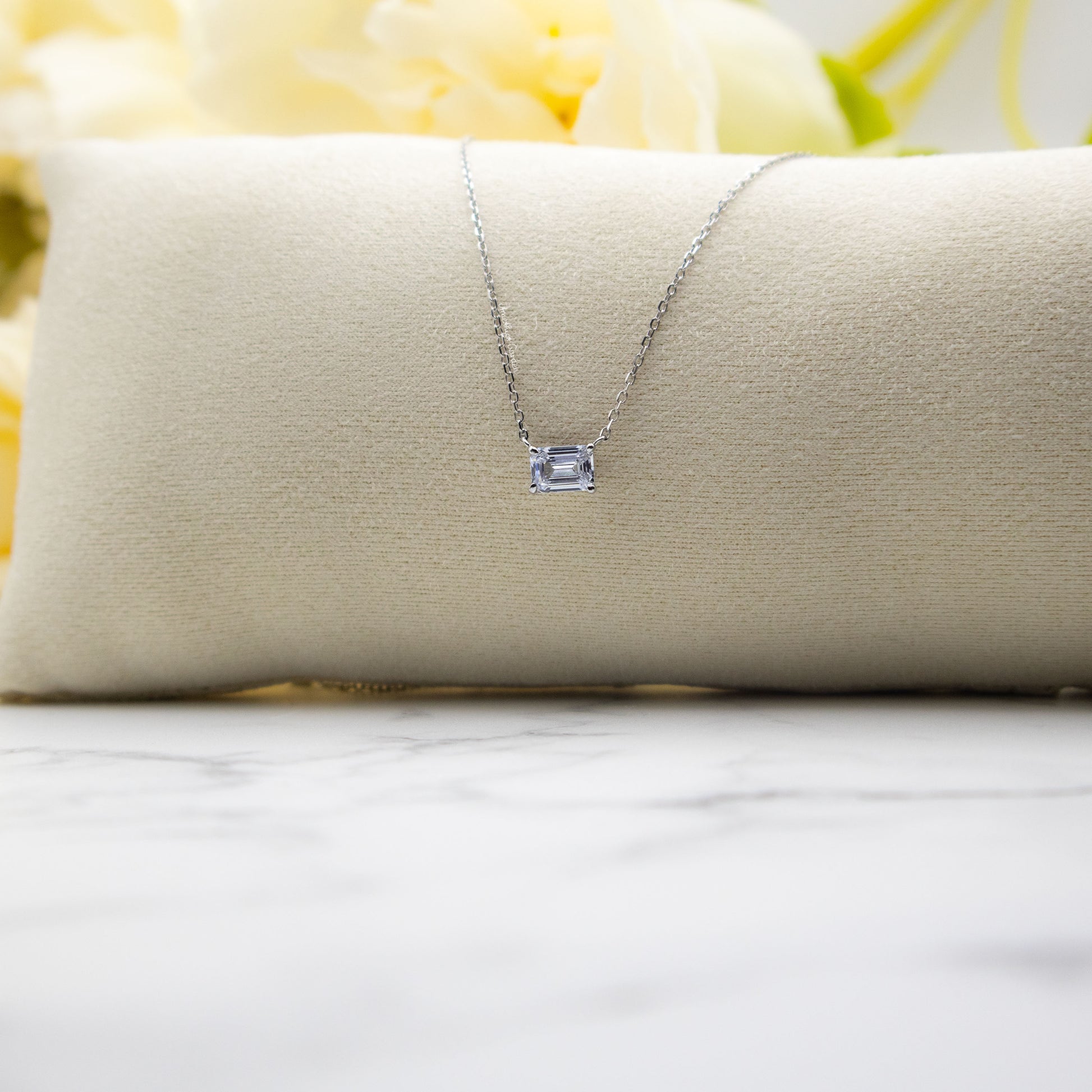 Füge einen Hauch Eleganz und Luxus zu deiner Halskettenkollektion mit dieser funkelnden kristallklaren Halskette aus massivem Sterling Silber. Der elegante Baguetteschliff macht dieses zierliche Stück zu einem exklusiven Geschenk.